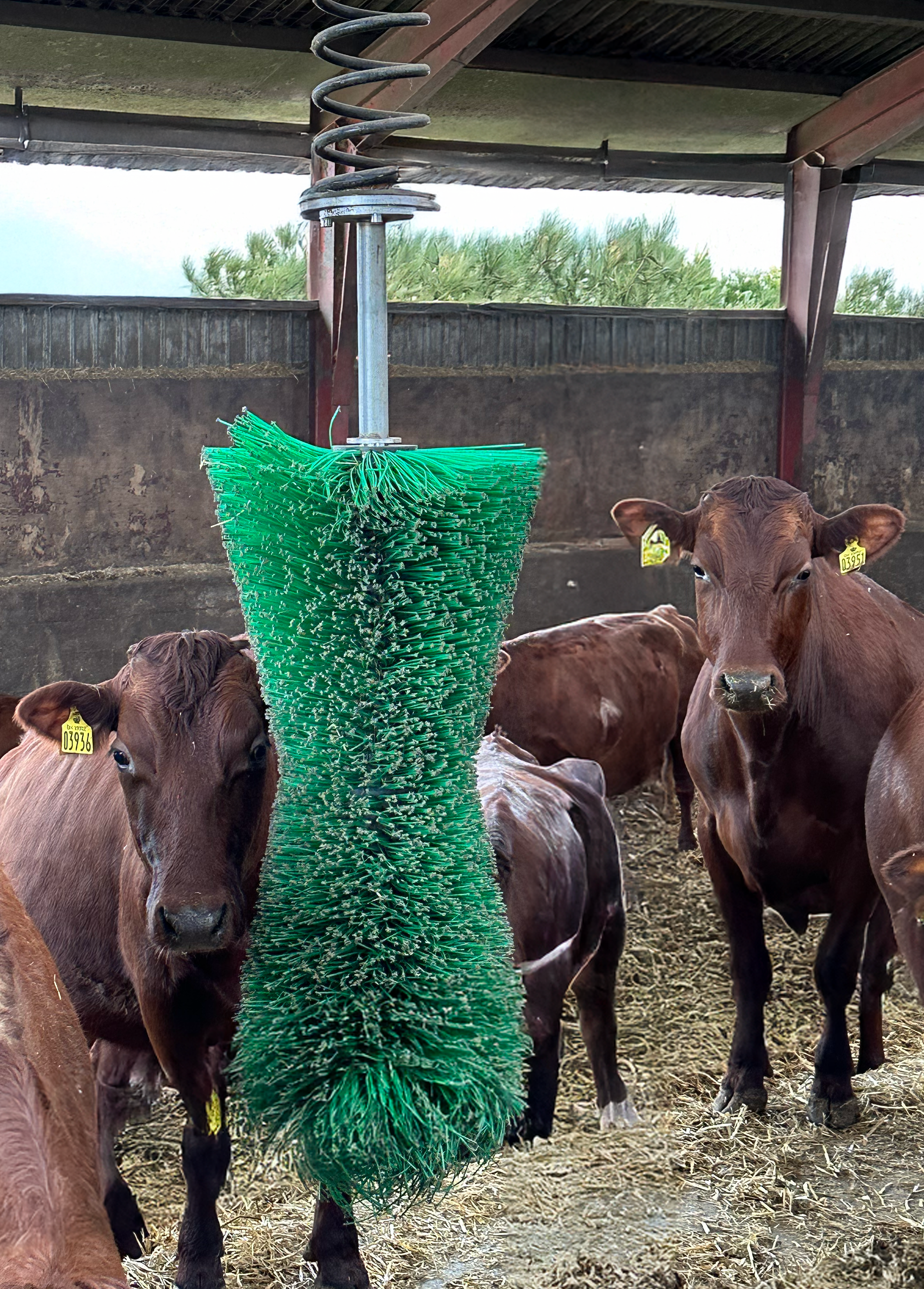 Lovoverholdelse: Overholder dansk lovgivning for roterende børster til malkekvæg.